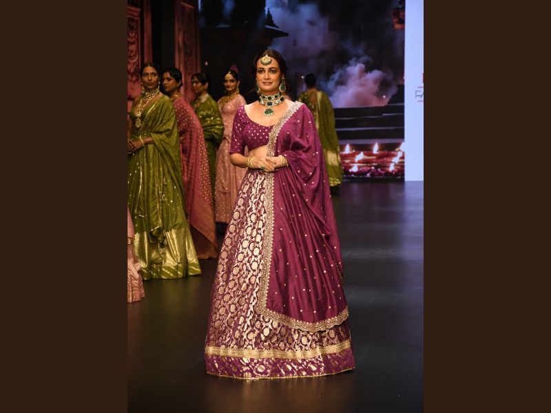 Dia Mirza made a stunning appearance as the showstopper for fashion designer Chaulaz Heritage at the Bombay Times Fashion Week 2024. The actress gracefully walked the ramp, captivating the audience with her elegance and charm.